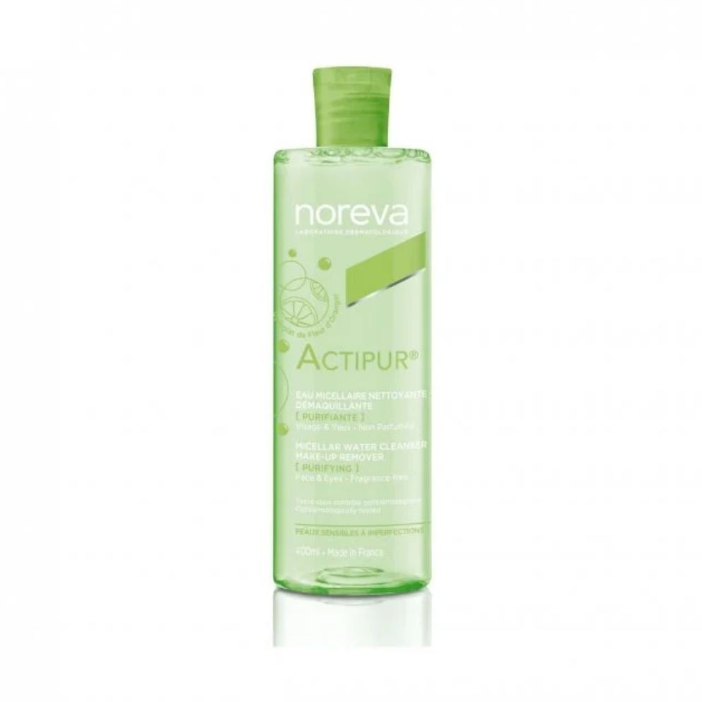 Noreva ACTIPUR micelarna voda za skidanje šminke 400 ml nježno uklanja šminku, nečistoće i višak sebuma s lica, očiju i usana, bez potrebe za ispiranjem. Formulirana za masnu i kožu sklonu aknama, dubinski čisti pore, umiruje kožu i pomaže u sprječavanju nastanka nesavršenosti. Ne sadrži alkohol, parabene ni sapune, te ne iritira kožu, ostavljajući je svježom, čistom i matiranom.