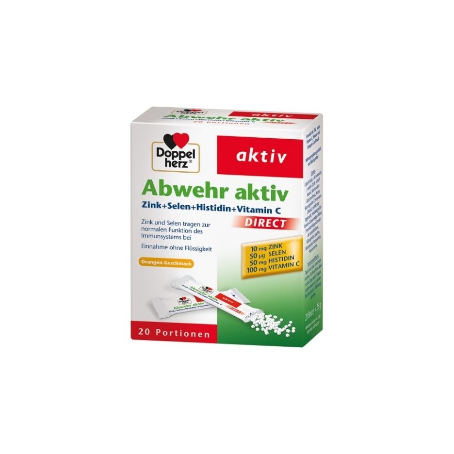 Doppelherz aktiv Immunity Direct – 20 porcija je dodatak prehrani u mikro-pellet kesicama narančinog okusa, osmišljen za svakodnevnu podršku imunološkom sustavu bez potrebe za tekućinom. Formula omogućava brzu apsorpciju ključnih nutrijenata na samom jeziku.