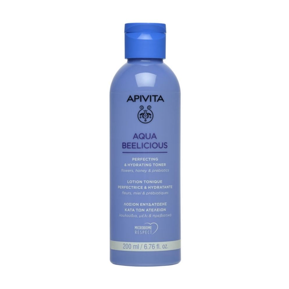Apivita Aqua Beelicious Perfecting & Hydrating Toner 200 ml je hidratantni tonik koji osvježava, hidratizira i priprema kožu za daljnju njegu. Obogaćen hijaluronskom kiselinom, cvjetnim infuzijama i prirodnim sastojcima, pomaže u ujednačavanju tena, smanjuje vidljivost pora i pruža trenutni osjećaj svježine. Njegova lagana formula brzo se upija, ostavljajući kožu mekom, glatkom i blistavom.