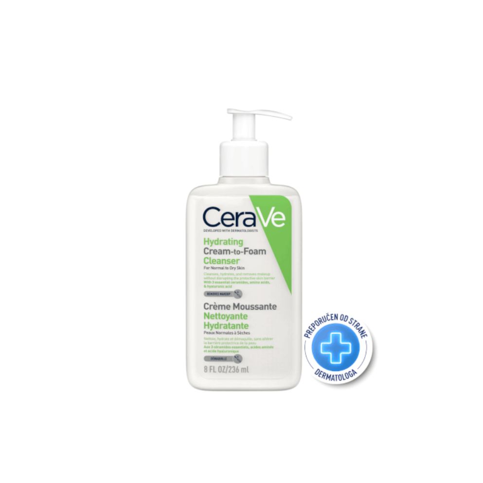 Razvijena u suradnji s dermatolozima, Hidratantna kremasto-pjenušava emulzija za čišćenje CeraVe Cream-to-Foam prvo ima kremastu teksturu, a kada je umasirate u kožu, zajedno s vodom pretvara se u prozračnu pjenu.