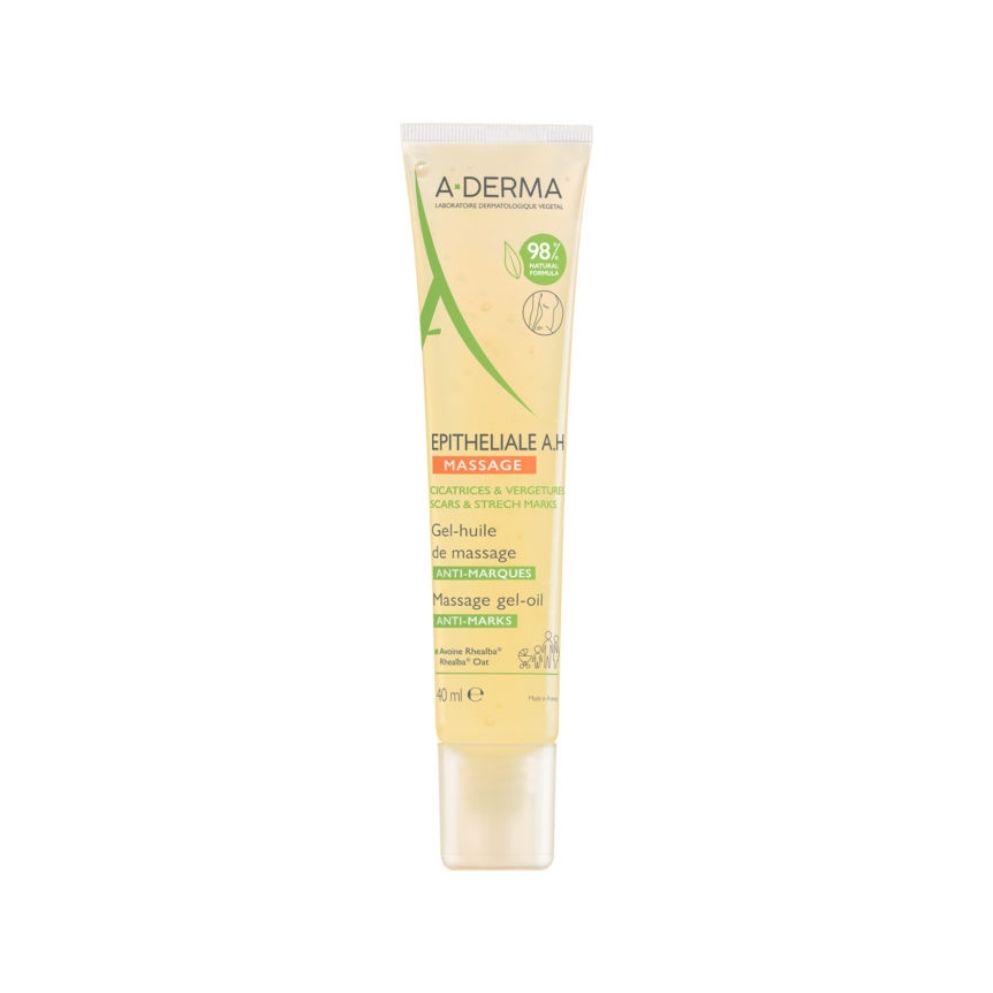 A-Derma Epitheliale A.H Duo Massage masažno gel-ulje 40 ml je obnavljajuće gel-ulje koje pomaže u smanjenju ožiljaka i tragova na koži. Obogaćeno ekstraktom Rhealba® zobi i uljima za intenzivnu hidrataciju, njeguje, umiruje i poboljšava elastičnost kože. Njegova inovativna tekstura se prilikom masaže pretvara iz gela u ulje, omogućavajući lakše upijanje i efikasniju njegu oštećene kože.