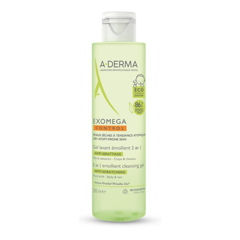 A-Derma Exomega Control emolijentni gel za čišćenje 2u1 200 ml je nježni gel za pranje lica i tijela, posebno formuliran za suhu i atopiji sklonu kožu. Obogaćen ekstraktom Rhealba® zobi, nježno čisti, hidrira i pomaže u smanjenju svrbeža, istovremeno jačajući zaštitnu barijeru kože. Njegova blaga formula bez sapuna pogodna je za svakodnevnu upotrebu kod beba, djece i odraslih.