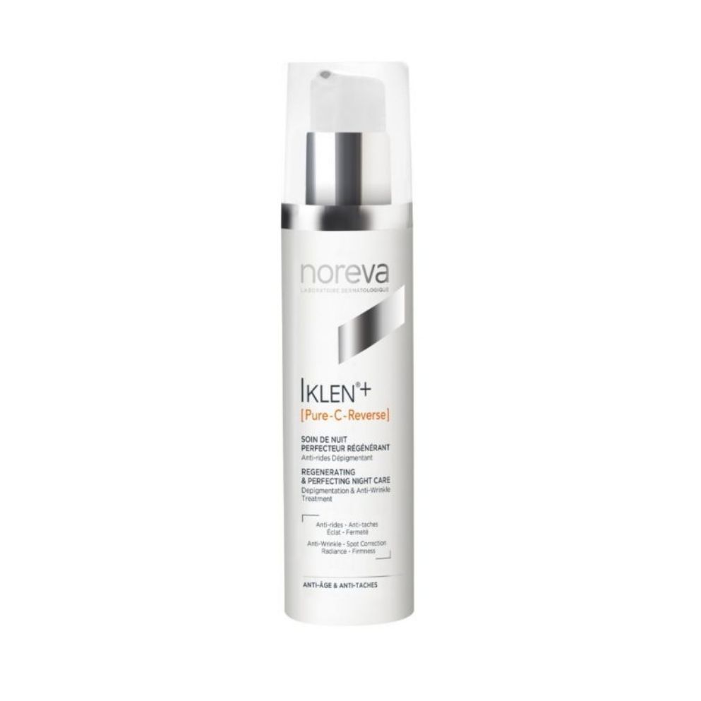 Noreva IKLEN+ Pure – C – Reverse noćna krema 50 ml je intenzivna noćna krema koja pomaže u smanjenju tamnih mrlja, bora i znakova starenja kože. Obogaćena vitaminom C, krema djeluje na obnovu kože tokom noći, čineći je svjetlijom, ujednačenijom i revitaliziranijom. Formula pomaže u poboljšanju elastičnosti kože i vraća joj prirodan sjaj.