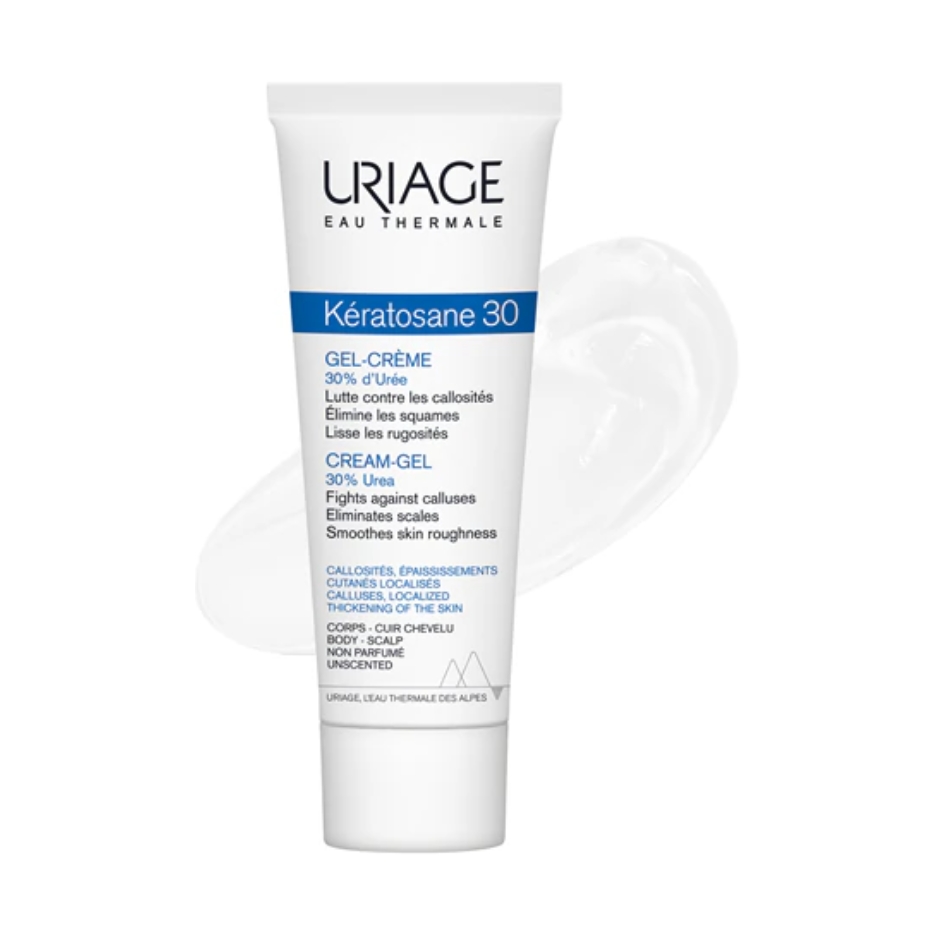 Uriage Keratosane 30 gel-krema je intenzivna keratolitička njega namijenjena zadebljanoj, hrapavoj i zadebljanoj koži tijela. Sa 30% ureje u svojoj formuli, efikasno omekšava i uklanja zadebljanja na laktovima, koljenima, petama i drugim suhim područjima, ostavljajući kožu glađom i mekšom.