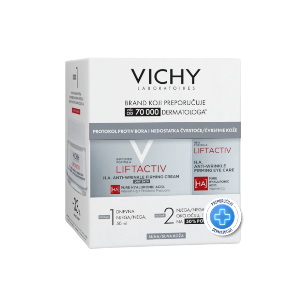 Vichy Liftactiv anti-wrinkle firming krema 50 ml pruža intenzivnu njegu protiv bora i gubitka čvrstoće kože. Formulirana s ramnozom, hijaluronskom kiselinom i Vichy vulkanskom vodom, pomaže u zaglađivanju bora, vraćanju elastičnosti i hidrataciji, ostavljajući kožu zategnutom i blistavom. Lagana tekstura brzo se upija i pogodna je za svakodnevnu upotrebu.