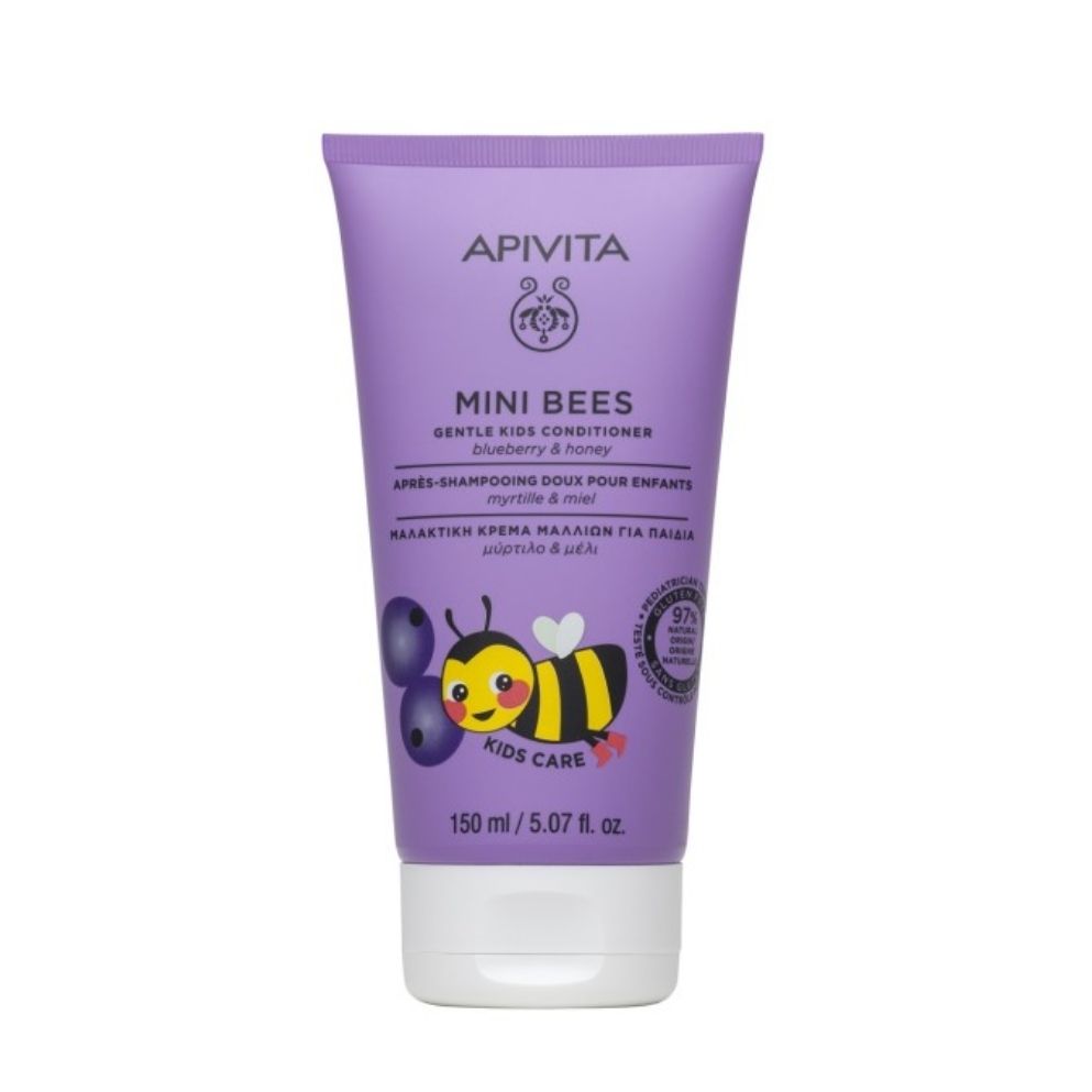 Apivita Mini Bees dječji regenerator s borovnicom i medom 150 ml nježno njeguje i omekšava dječju kosu, olakšavajući raščešljavanje bez čupanja.