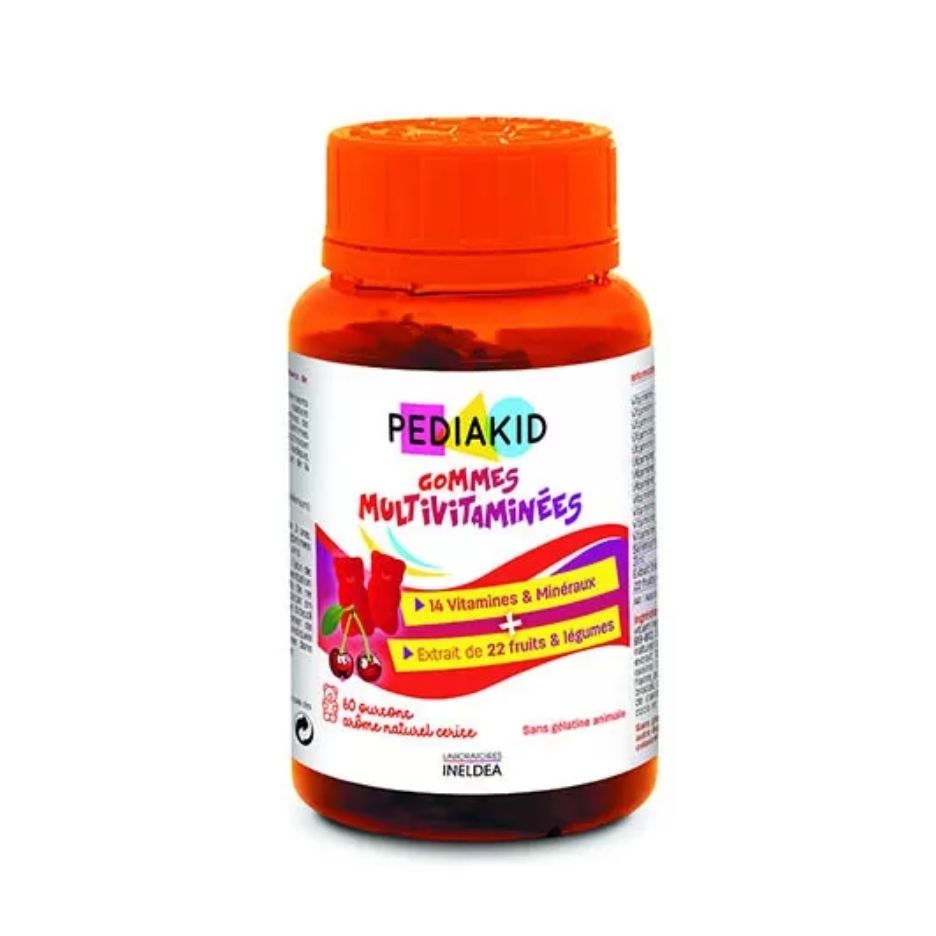 Pediakid multivitaminske bombone za djecu 60 komada su gumene bombone obogaćene 12 ključnih vitamina za potporu rasta i razvoja.