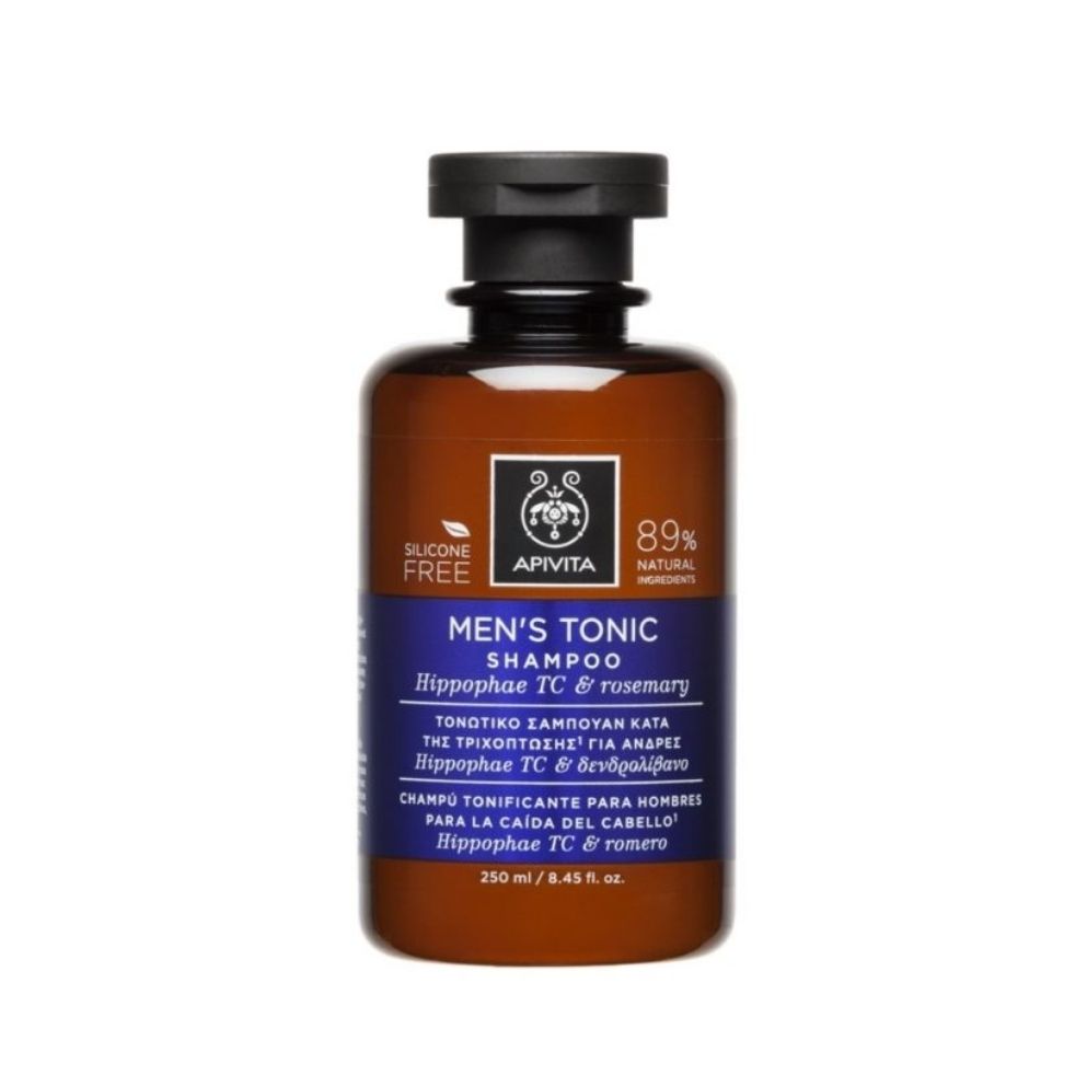 Apivita šampon protiv opadanja kose za muškarce 250 ml pomaže u jačanju kose, smanjuje njen gubitak i poboljšava rast. Obogaćen ekstraktom ginsenga, kofeinom i propolisom, stimulira mikrocirkulaciju u vlasištu, jača korijen kose i vraća kosi gustoću.