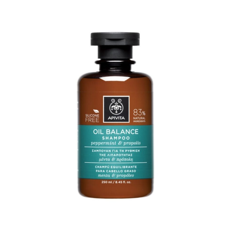 Apivita šampon za masnu kosu s nanom i propolisom 250 ml učinkovito čisti kosu i vlasište, uklanja višak sebuma i sprječava brzo mašćenje. Obogaćen ekstraktom nane, propolisom i eteričnim uljem čempresa, balansira kožu glave, osvježava i pomaže u održavanju kose dugotrajno čistom i svježom.