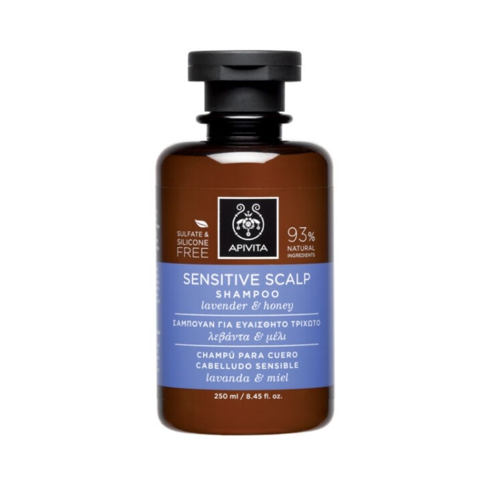 Apivita šampon za osjetljivu kožu glave s lavandom i medom 250 ml nježno čisti i umiruje osjetljivo vlasište, smanjuje iritacije i pruža hidrataciju. Obogaćen lavandom, medom i aloe verom, ovaj šampon smiruje svrbež, obnavlja kožnu barijeru i čini kosu mekom, glatkom i hidratiziranom.