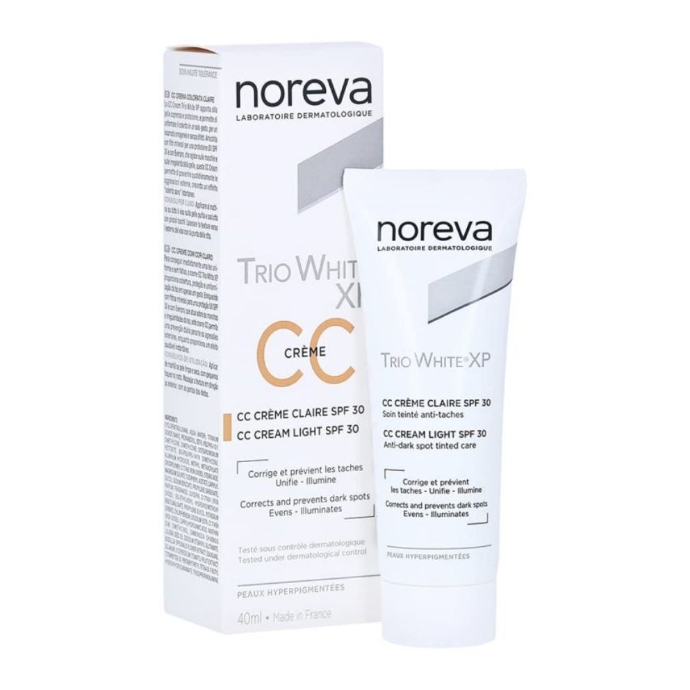 Noreva Trio White XP CC krema Light SPF30 40 ml je tonirana krema koja ujednačava ten i pruža zaštitu od UV zraka. Obogaćena aktivnim sastojcima koji smanjuju tamne mrlje i poboljšavaju prirodni sjaj kože, ova CC krema hidratizira kožu, smanjuje crvenilo i pruža prirodan mat finish. S visokim SPF30 faktorom štiti kožu od štetnog sunčevog zračenja. Idealna je za svakodnevnu upotrebu.