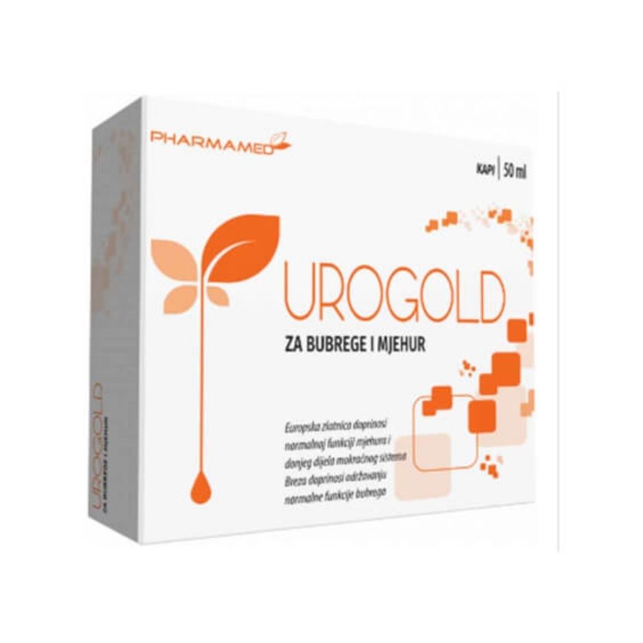 Urogold kapi za bubrege i mjehur 50 ml je biljni dijetetski dodatak prehrani namijenjen potpori normalne funkcije mokraćnog sustava, poticanju izlučivanja viška tekućine i sprječavanju nakupljanja kristala i sedimenta.