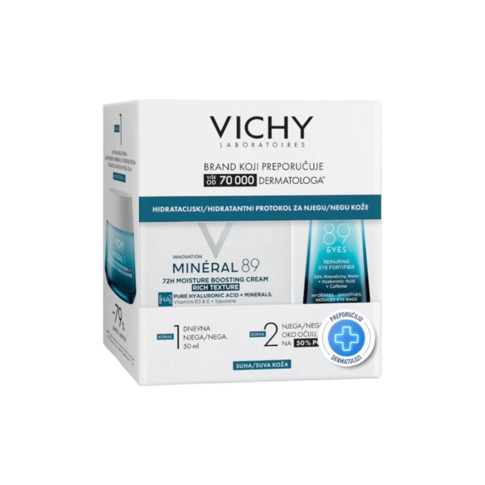 Vichy paket Minéral 89 Rich Texture krema 50 ml + Minéral 89 Eyes krema 15 ml (suha koža)