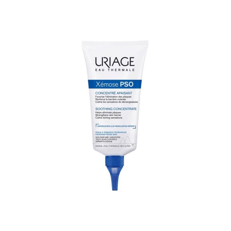 Uriage Xémose PSO umirujući koncentrat je specijalizovana njega namijenjena zadebljanoj, suhoj i ljuskavoj koži sklonoj psorijazi. Obogaćen Uriage termalnom vodom, patentiranim TLR2-Regul i Chronoxine™ kompleksom, ovaj koncentrat umiruje iritacije, smanjuje svrbež i poboljšava izgled kože već nakon prvih primjena.